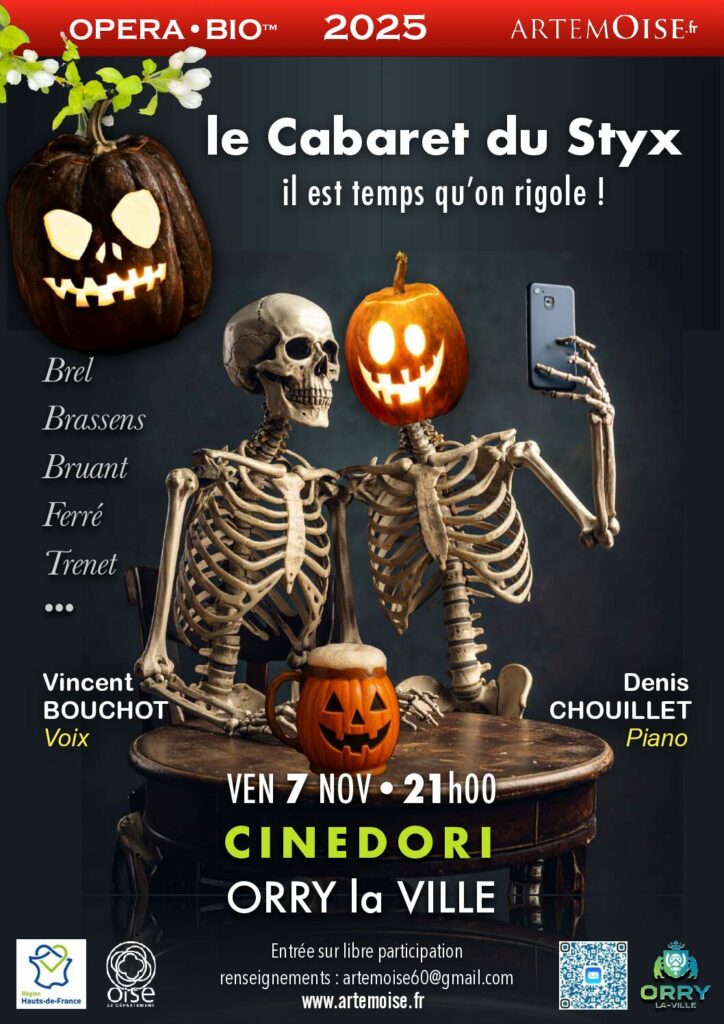 Un cabaret déjanté, joyeusement macabre, où les squelettes prennent la pose et les citrouilles rient à gorge déployée. Dans ce spectacle, les plus grands noms de la chanson française – Brel, Brassens, Bruant, Ferré, Trenet… et quelques autres surprises – reprennent vie avec humour et tendresse.